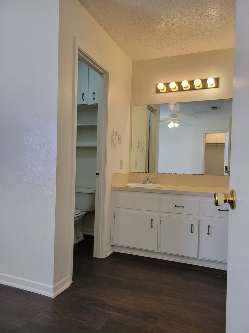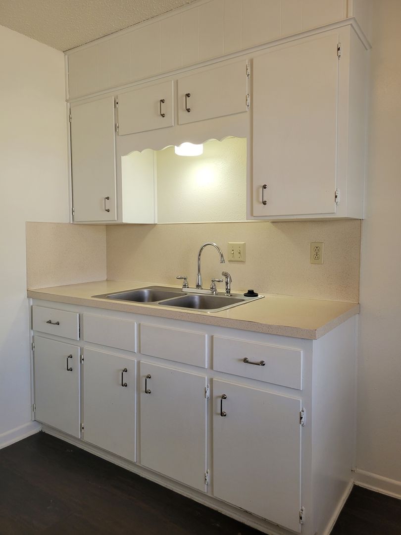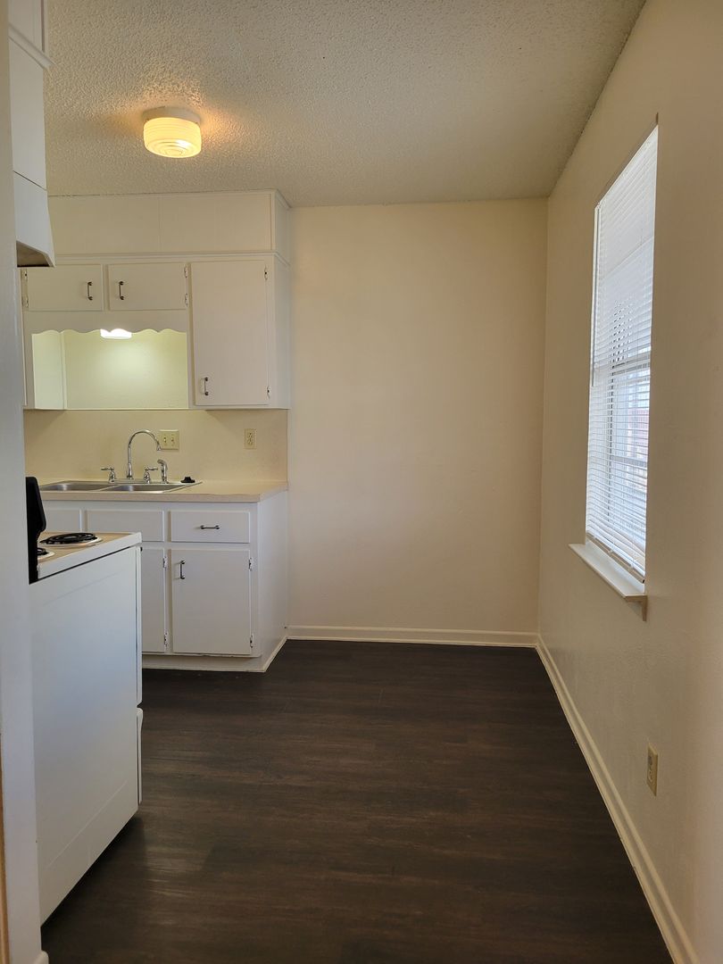 Some of the best used 650 square feet you have ever seen in this great, unusual layout! Large kitchen has been updated with newly refinished cabinets and counter tops in the kitchen, equipped with electric range, frost free refrigerator, garbage disposal. Spacious kitchen has plenty of room for a small dining-room table. Open concept dining and living-room are loaded with natural light. The master bedroom is a unique and friendly layout with a walk in closet, separate vanity area and private bath area with tub/shower combination. Located on Lake Road in Killeen, this apartment is only five minutes from the airfield entrance to Fort Cavazos. Availability dates are estimates and are subject to change without notice.