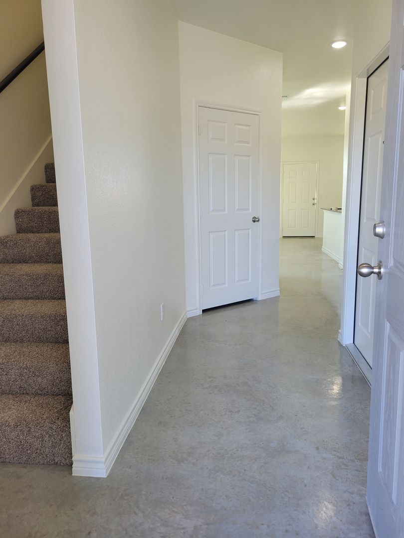 This GORGEOUS 3 bedroom 2 and a half bath townhome is ready for move in! This 1,360 SF very thoughtfully designed home with endless upgrades to include gorgeous polished concrete floors downstairs with plush carpet on the stairs and in all bedrooms. The living, dining and kitchen area is the popular open concept style at nearly 30 feet deep with a fully equipped kitchen including electric range, built in microwave, refrigerator and dishwasher. There is a convenient half bath downstairs and two full bathrooms upstairs. The large master suite has its own full en-suite bath with his and her sinks and a large walk in closet off the bedroom. The other two bedrooms share the guest bath upstairs and each have plenty of closet space. The property also features a one car garage, separately fenced, private back yard, fully landscaped with in-ground sprinkler system and so much more! Place this property on hold today with just ½ of the deposit. Owners are pet friendly at their discretion. Availability dates are estimates and are subject to change without notice.