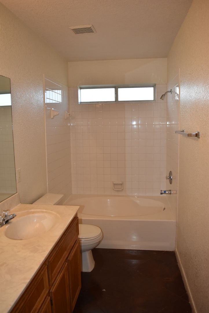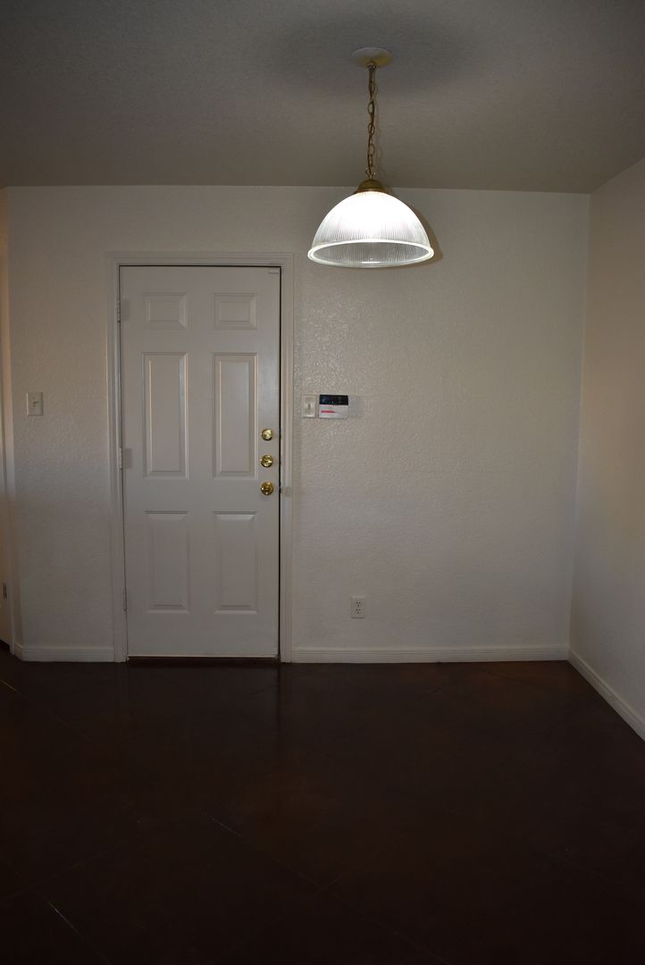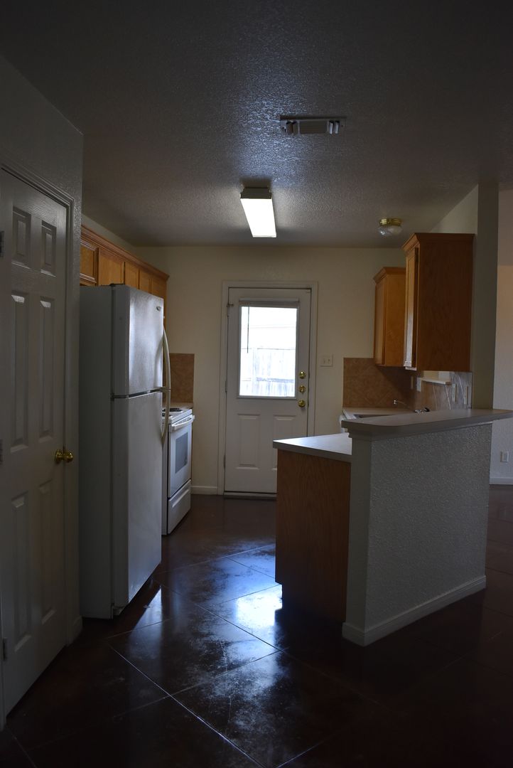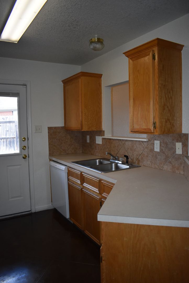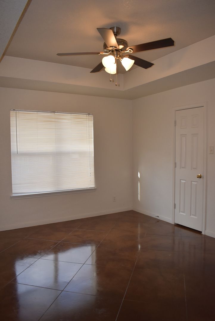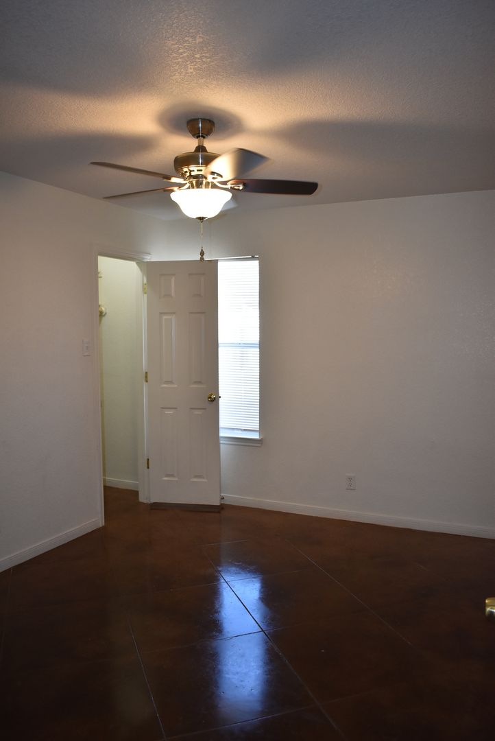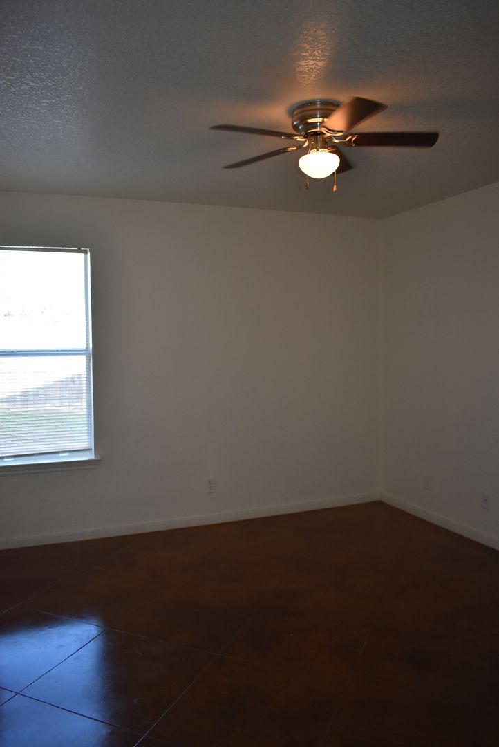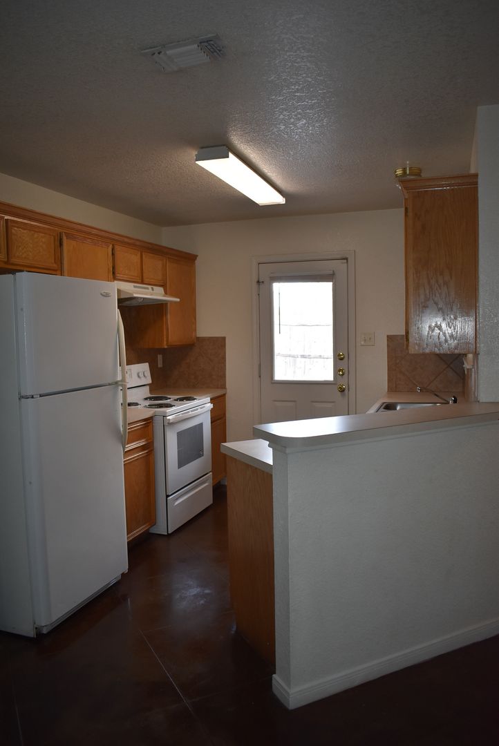 This duplex apartment is offering 3 bedrooms, 2 bathrooms, a 1 car garage, and 1,295 square feet of space. The flooring throughout the home is etched custom concrete that looks just like ceramic tile. The eat in kitchen is complete with a stove, refrigerator, dishwasher, ceramic tile backsplash, pantry, extended cabinets and countertop space, backyard access, and double sink with disposal. All of the bedrooms have ceiling fans, but the master bedroom has an en suite bath and a walk-in closet. The master bathroom comes with a double vanity and garden tub/shower combo. Additional amenities include a built-in desk, trey ceiling in the master bedroom, covered porch, and a fenced yard. Call today as this one will not last!