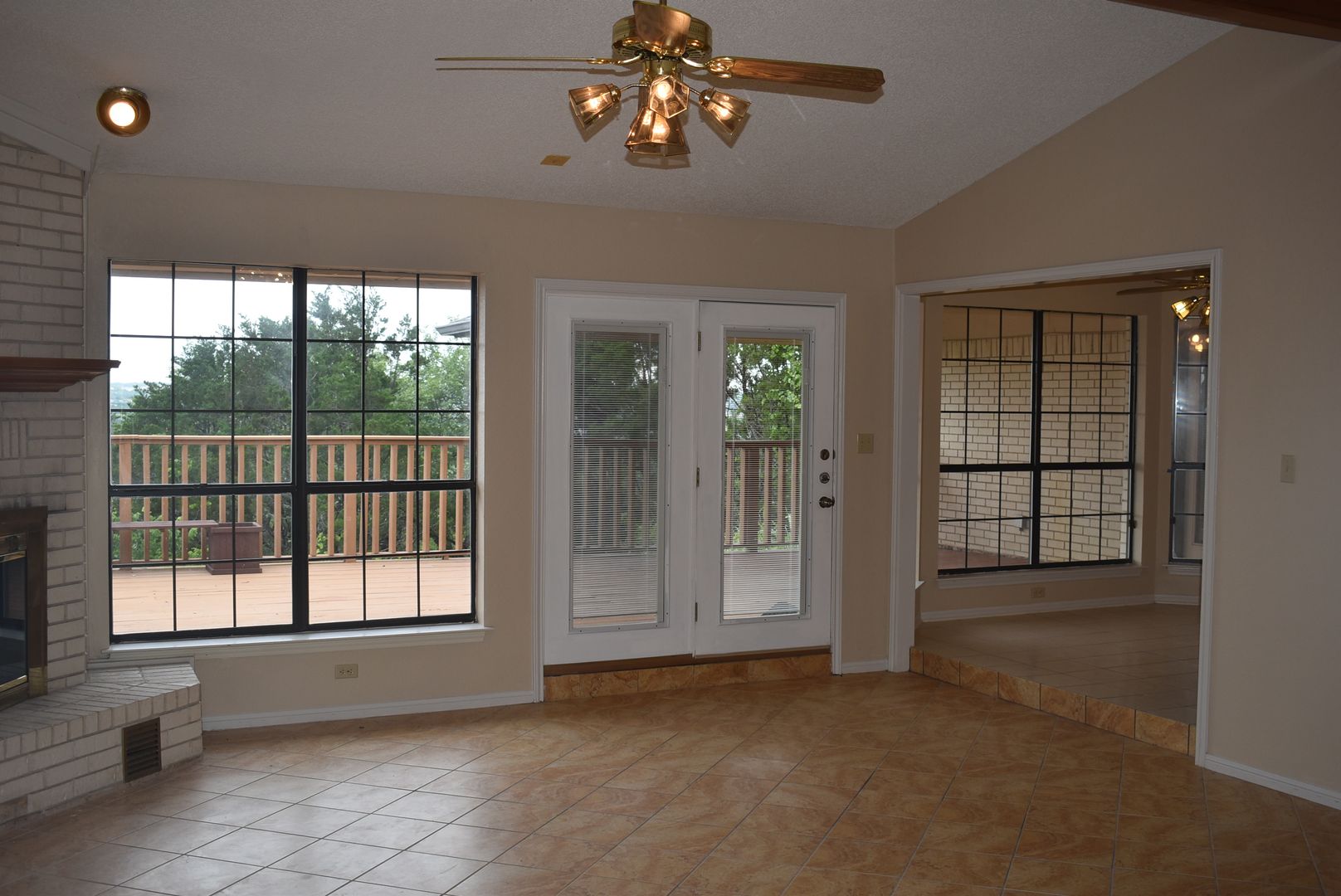 Welcome home to spacious style in a great location. Just minutes from shopping and dining, yet nestled in a quiet and wooded area this home has something for everyone. An abundance of trees frame the front for curb appeal and the expansive wood deck off the back offers relaxing views of most of Harker Heights. Find a room for every occasion in the versatile floor plan that includes a formal dining room, formal living and wide open gathering area with a great room, wet bar, corner fireplace and french doors out to the back deck. The large kitchen has an eat in breakfast area and island with plenty of cabinets for storage. The master bedroom has it's own wood burning fireplace and en-suite bath with large sunken tub and separate shower. The other two bedrooms are on the other side of the home and share a large guest bath with double sinks. All floors are either wood laminate or ceramic tile - no carpet! Additional amenities in the home include front yard sprinkler system, garage door opener and large garage with extra storage. This is a unique find and will not last! CALL US TODAY! Availability dates are estimates and are subject to change without notice.