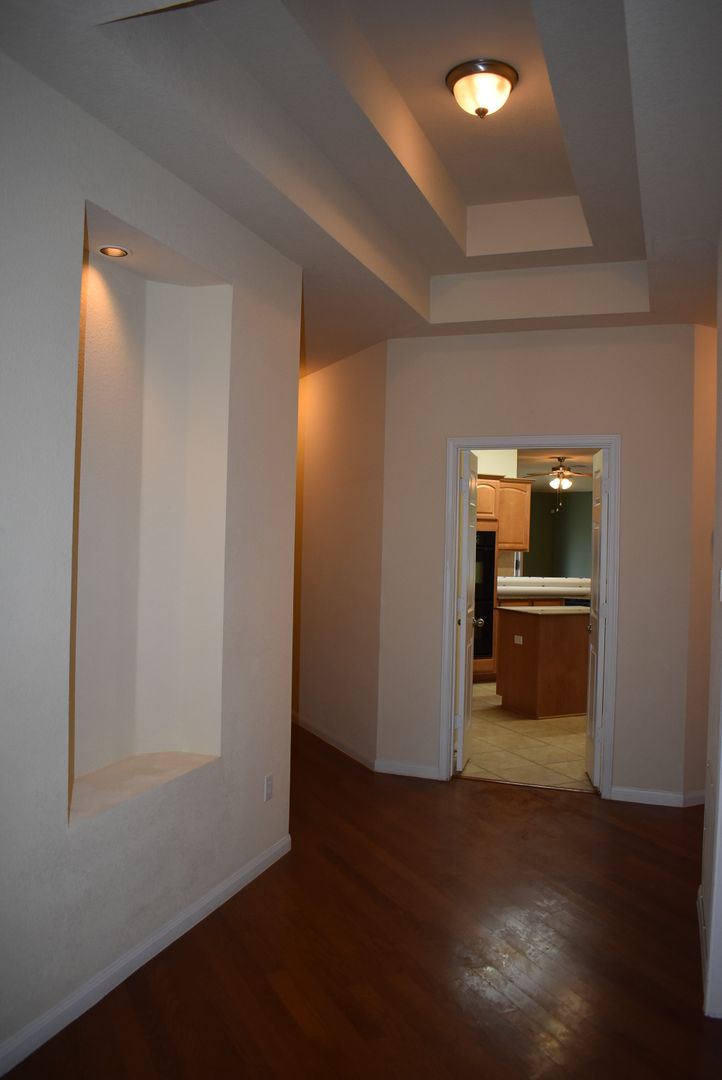 2,764 square foot 4 BR, 3 BA, 3 LV, 2 DN, 2 Car Garage located in popular Skipcha Mountain Estates in Harker Heights. Every inch of this amazing custom built home is impressive with too many upgrades to mention. Enter into a great room style formal living (1st living area) and dining with a double door bonus room (10x13) large enough to be a game room, office, den or 5th bedroom (no closet). An impressive short hallway with double recessed tray ceiling with custom lighting takes you to the heart of the home with an amazing gourmet kitchen at the very center. Beautiful custom built Maple solid wood cabinets surround the kitchen and lead into the dining room with built in office/computer area. All cabinets are recessed, with room above for decorating and storage. All counter tops are gorgeous granite. Appliances include side by side refrigerator, dishwasher, double ovens and glass top stove. A center island, complete with additional storage, electricity and the same beautiful granite top sits in the center of the kitchen. The kitchen has a bar view of the family room and breakfast area, as well as additional breakfast bar seating. The family room is a generous 16.5”x18’5” and is highlighted by a beautiful, floor to ceiling red brick, wood burning fire place with oak mantle and recessed art box display. Continue around the corner and you will find an over-sized master suite (18’5” x 14’) with an impressive double door entrance. On the opposite wall you will find two additional bedrooms (12’x11” each), one with a deep walk in closet and an additional full bath. Continue around the corner and down the hall to a guest suite and a third full bath. Flooring surfaces in the home include carpeted bedrooms, ceramic tile and linoleum in wet areas and hardwood flooring in living areas. Additional amenities in the home include a security system, two car garage with opener, double pane insulated windows, screens on all windows, custom molding throughout, ceiling fans in every room, sprinkler system in front yard, energy efficient hvac and water heater, full brick exterior, upgraded insulation and much more.
