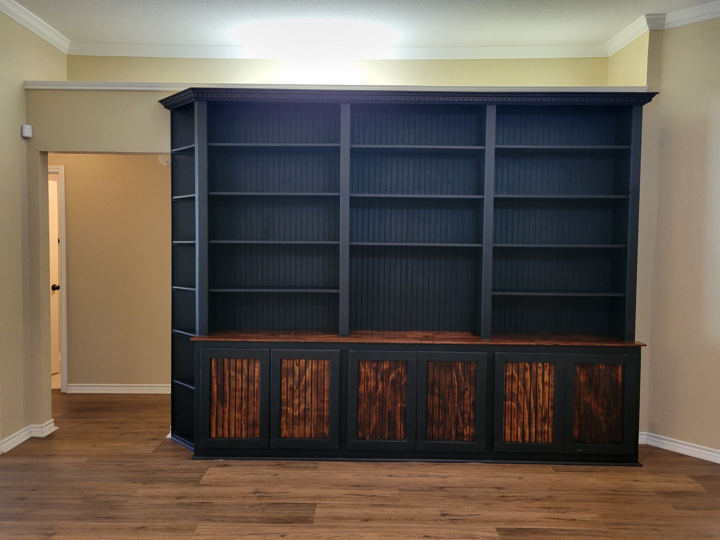 Beautiful, well maintained home. Over 1/2 acre in center of cul de sac with a park like and very private back yard with numerous large trees. Three bedrooms plus an office with glass french doors! The kitchen has custom oak cabinets, center island, corner window to back yard, double stainless steel sink, all black appliances including a very nice refrigerator and a large archway leading to the living room. The living room has crown molding, a fireplace and a custom built bookcase/wall unit made with solid wood. There is a jetted garden tub in the master bath, two walk in closets, double vanities and a separate shower. All major rooms have ceiling fans and faux wood blinds. New vinyl plank flooring and ceramic tile throughout!! There are two nice decks out back and the huge yard has a full sprinkler system.