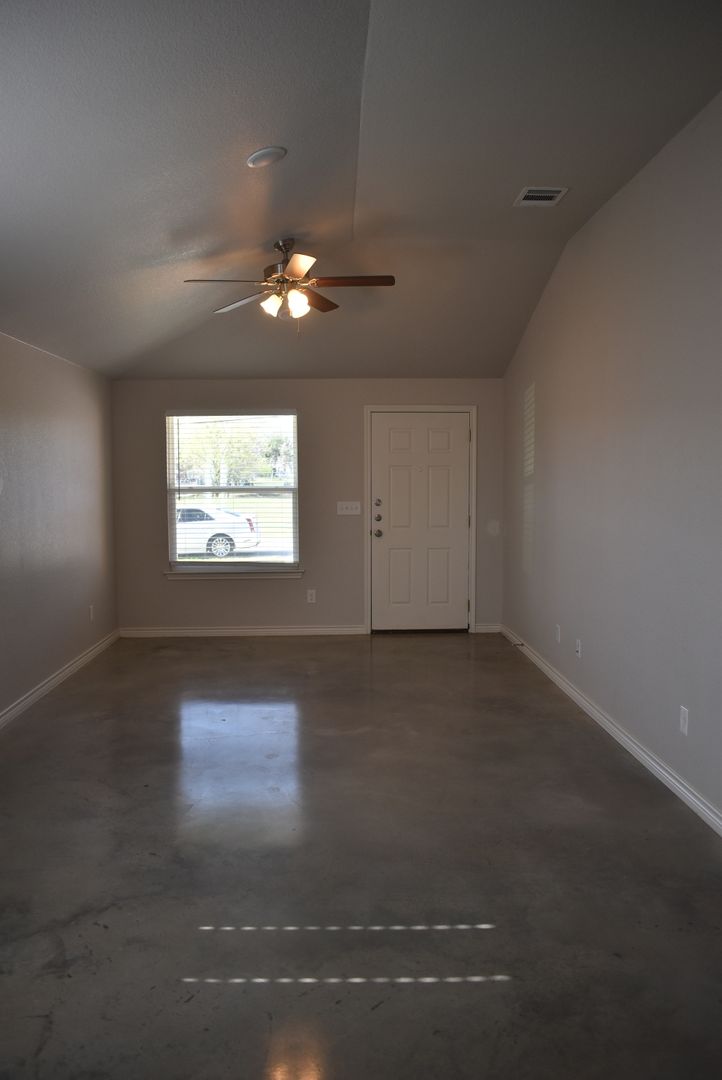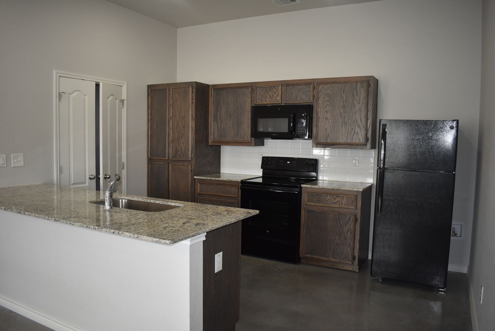 3 bedroom, 2 bath duplex is full of the upgrades we love to see! This home includes tall, 9’ ceilings in the entire living area, gorgeous polished concrete floors in dark grey, extended covered front patio, XL living room, dedicated breakfast bar area with room for bar stools, separate dining area with access to the covered side patio, the fully equipped kitchen with loads of gorgeous dark wood cabinets and granite counter tops including refrigerator with ice maker, smooth top electric range, dishwasher and built in microwave, indoor separate utility area, large master bedroom with walk in closet and en-suite bath with his and her vanities and linen closet, a one car garage, separately fenced- private back yard, fully landscaped! This property will NOT LAST! Availability dates are estimates and are subject to change without notice.