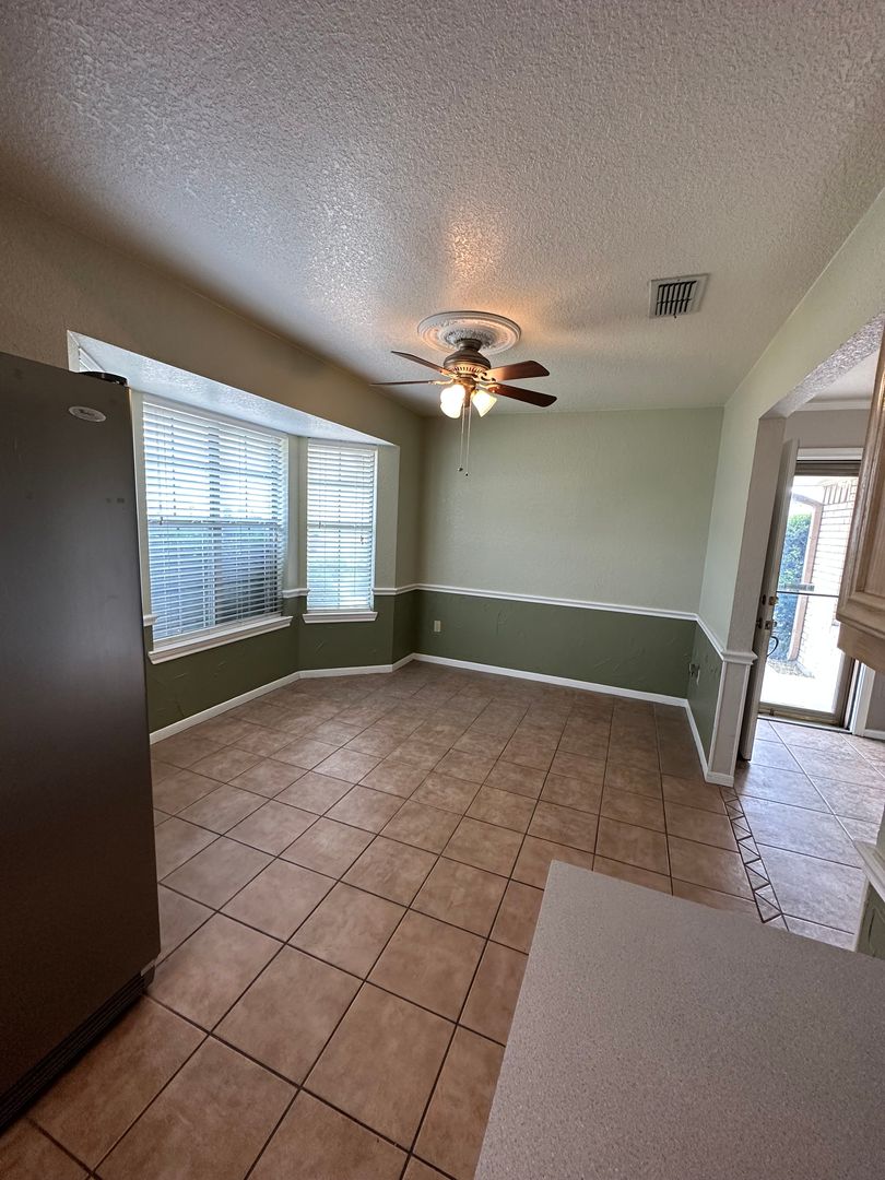 Discover this 3-bedroom, 2-bath home in Killeen, TX, featuring stainless steel appliances and an eat-in kitchen with a bay window that brings in natural light. The living room showcases a trey ceiling and a wood-burning fireplace, while ceramic tile flows throughout the entire home for easy upkeep. The primary suite offers a gorgeous extra-large shower and a master bath with two separate sinks and vanities. A separate laundry room adds convenience to the layout. This residence combines functional design and thoughtful finishes for comfortable, low-maintenance living.