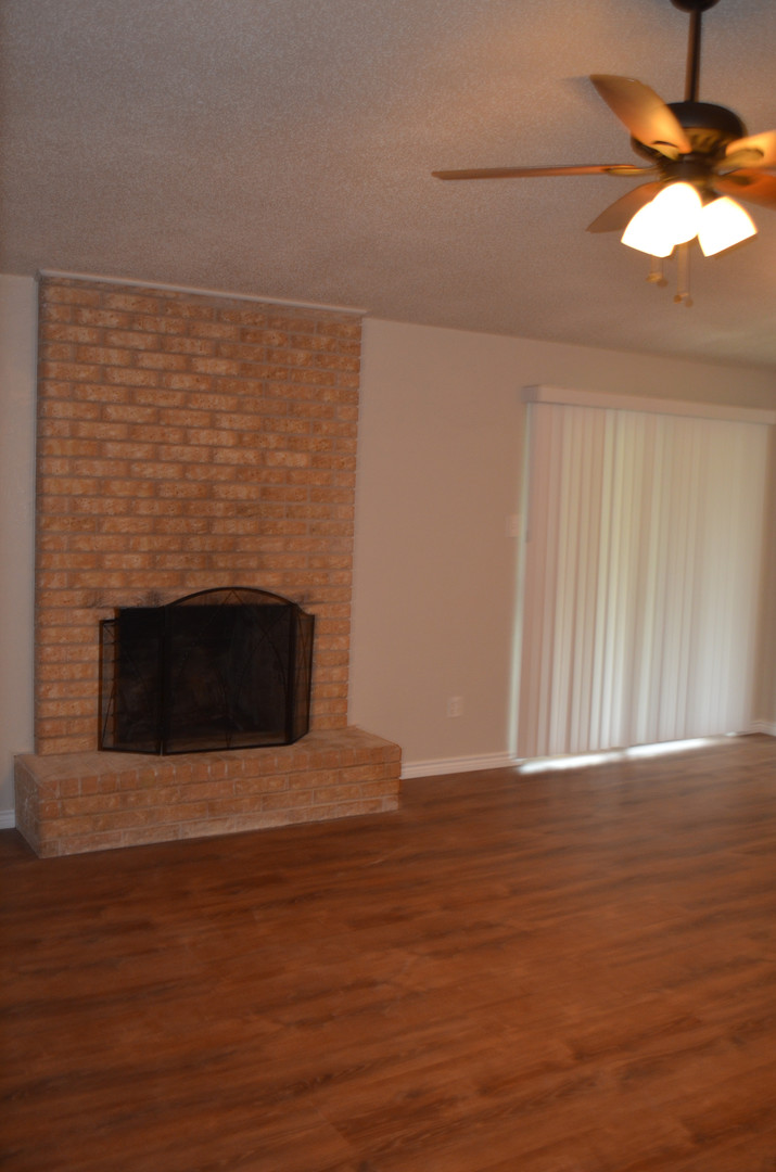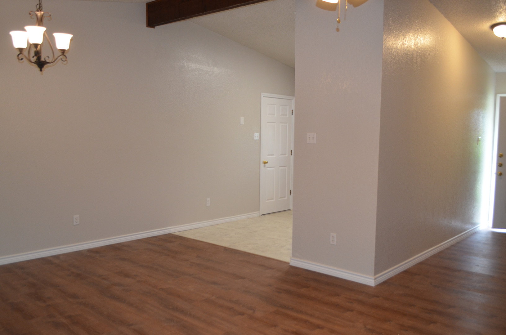 Great starter home newly remodeled with vinyl plank throughout and a must see! The large living area has high vaulted ceilings and a cozy brick, wood burning fireplace with exposed cedar beam! The kitchen is fully equipped with refrigerator, range and dishwasher and has newly refinished cabinetry, new flooring and countertops and contemporary lighting. Leading down the hallway, the two spare bedrooms are located on the left and share a guest bathroom with a tub/shower combination on the right and the master at the end of the hall. The spacious master has it's own en-suite bath with beautiful spacious three sided glass shower! The hallway includes a roomy linen closet with tons of shelf space and a coat closet at the entry. The large backyard provides plenty of room, covered patio and beautiful shade trees for b-b-ques and entertaining.